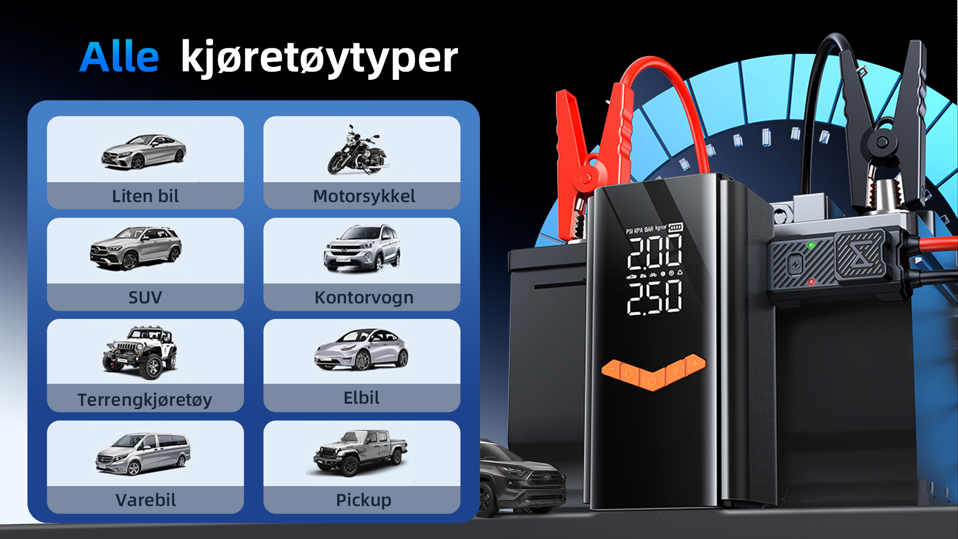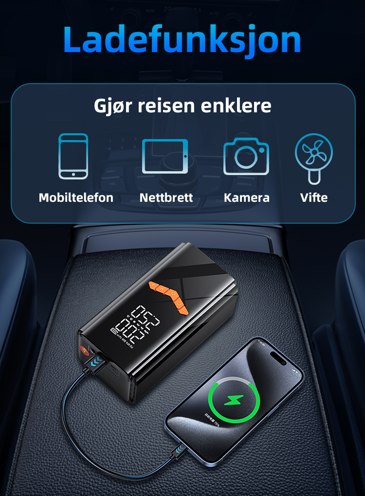 ZyraHome™ 2 in 1 Startbooster (jump starter) & Dekkpumpe