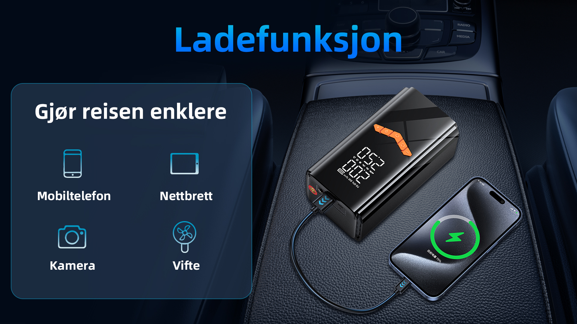 • Ingen avhengighet av sigarettenner