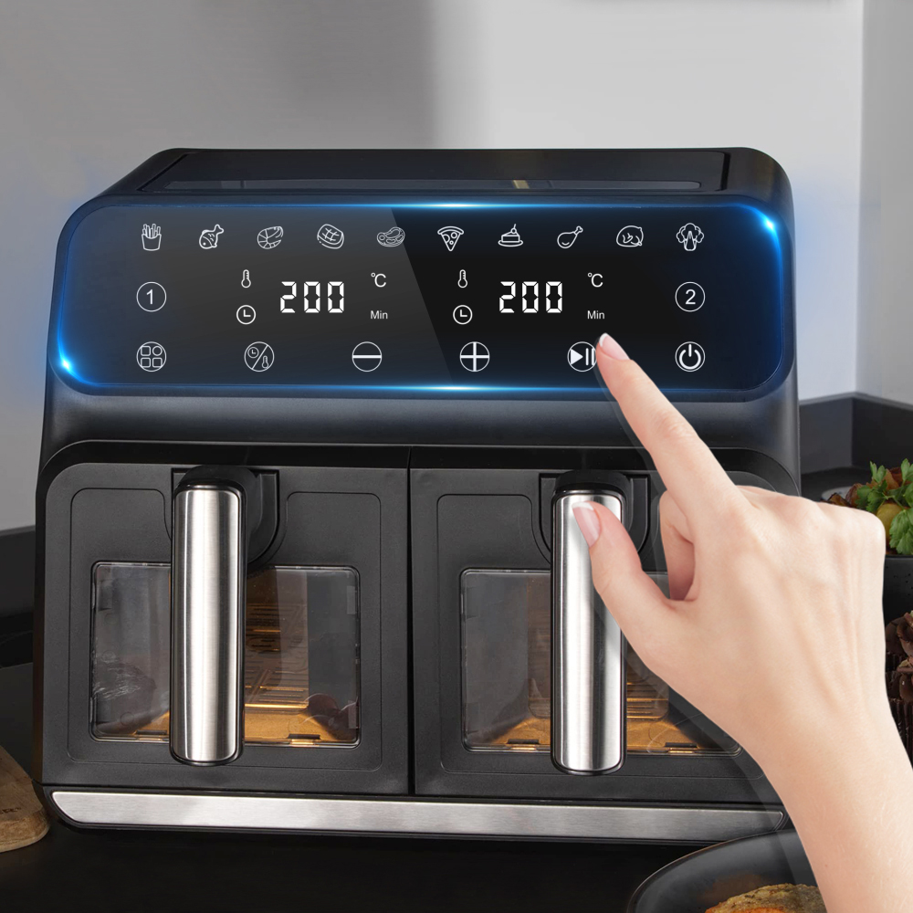 bruker denne doble luftfrityrkokeren når du sammenligner energien som brukes til å tilberede en kylling i en 1,7 kW elektrisk ovn.