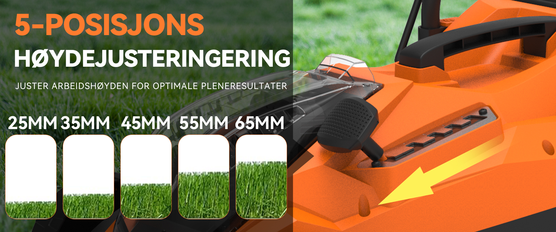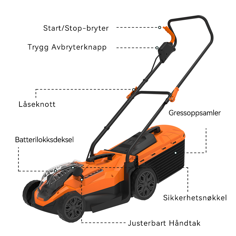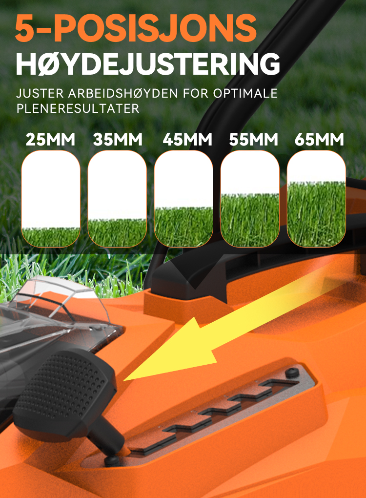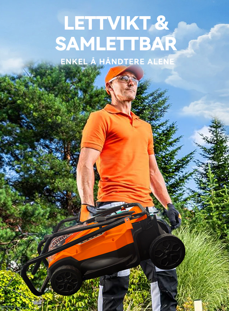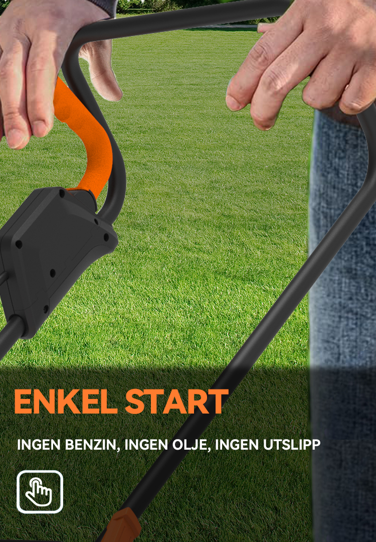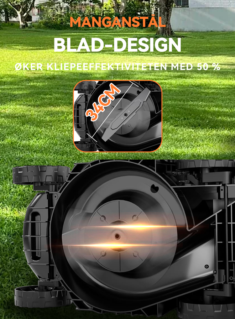 Forvandle plenpleien til en lek med intelligent effektivitet. Vår gjennomtenkte design kombinerer kraft og praktisk funksjonalitet med batteriovervåkning i sanntid, komfortabel håndtering og plassbesparende bekvemmelighet. Det smarte mulching-systemet pleier plenen din mens du nyter gnidningsfri og problemfri betjening – alt i ett elegant design.