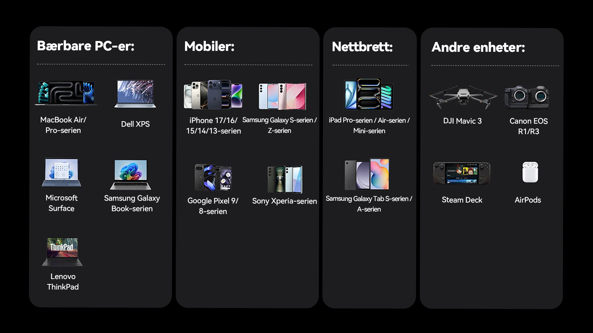 Laget for å være med i hverdagen – den glatte overflaten ligger godt i hånden og bidrar til å redusere fingermerker, slik at den ser ren og eksklusiv ut. Den har også en innebygd, uttrekkbar USB-C-kabel (ca. 65–70 cm) for ekstra komfort, samt en bærereim på siden slik at du enkelt kan gripe den og ta den med deg overalt.