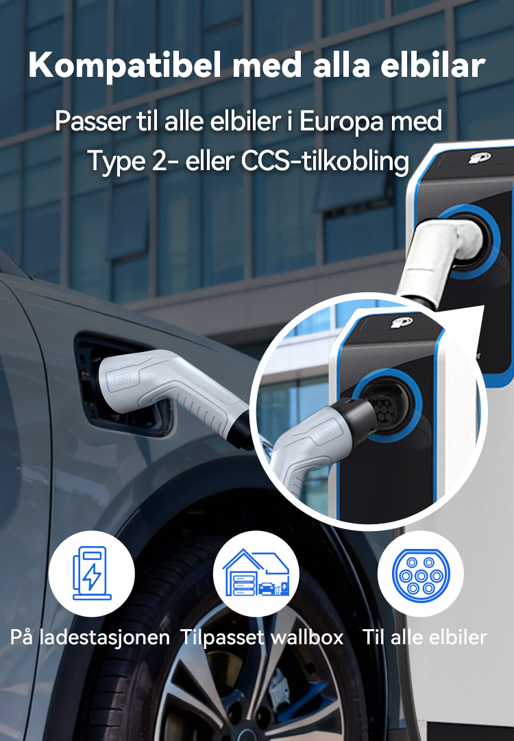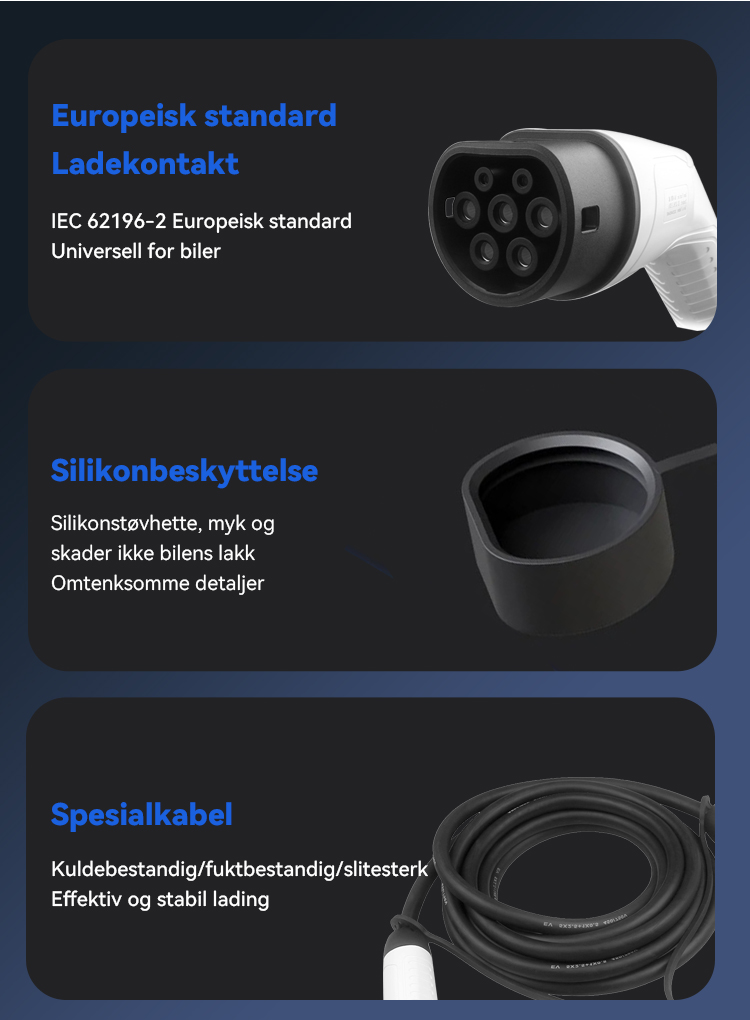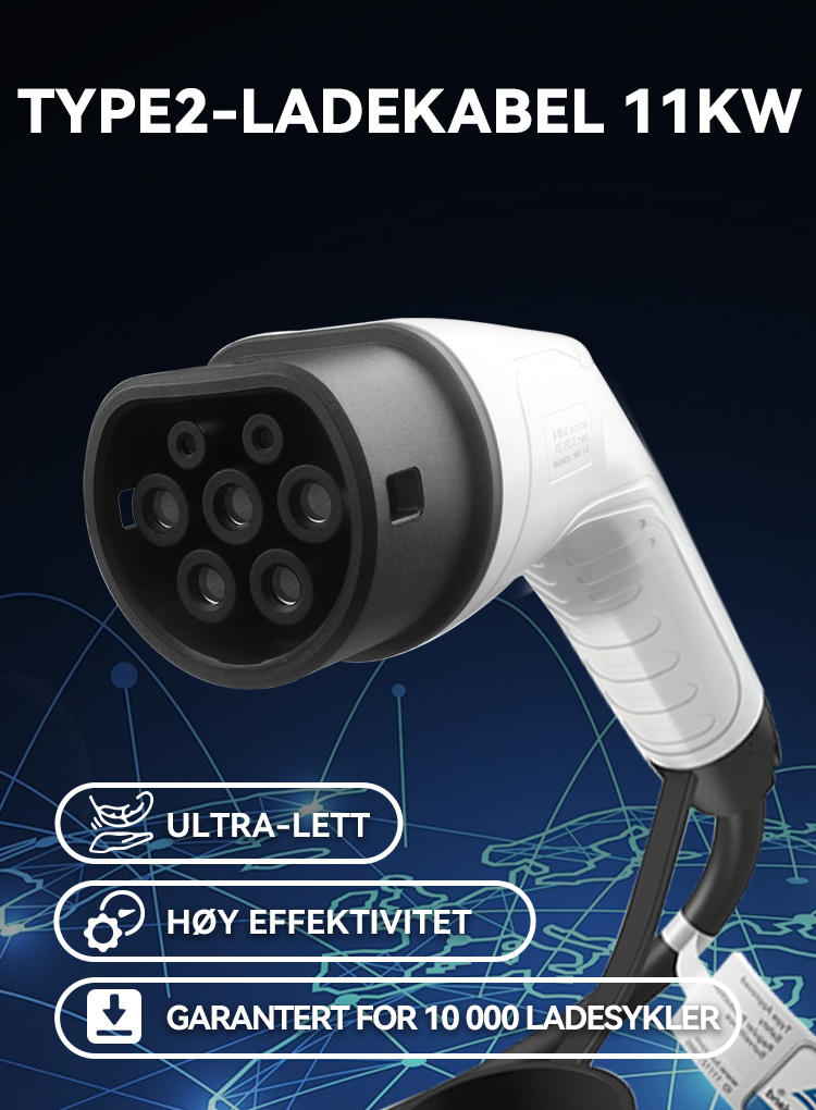 22 kW (32A, trefase) – Utviklet for maksimal AC-ladeeffekt der dette støttes