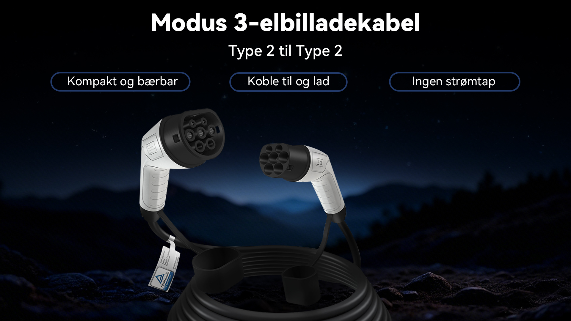 Kabler med høyere effekt er fullt bakoverkompatible. Det betyr at en 22 kW-kabel trygt kan brukes til både 11 kW og 7,4 kW lading.